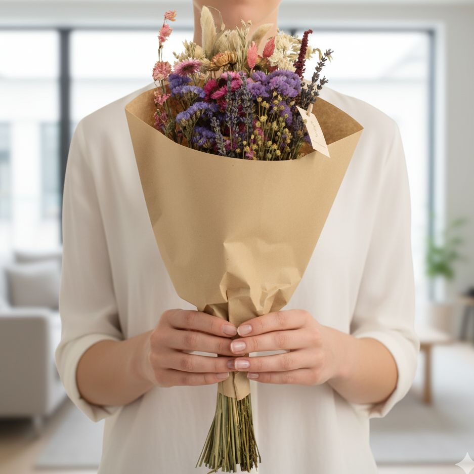Het Droogbloemen Field Bouquet Pink is een elegant en romantisch veldboeket in zachte roze tinten. Met een diameter van 20 cm en een hoogte van 50 cm zorgt dit boeket voor een warme, stijlvolle sfeer in huis en blijft het langdurig mooi zonder onderhoud.