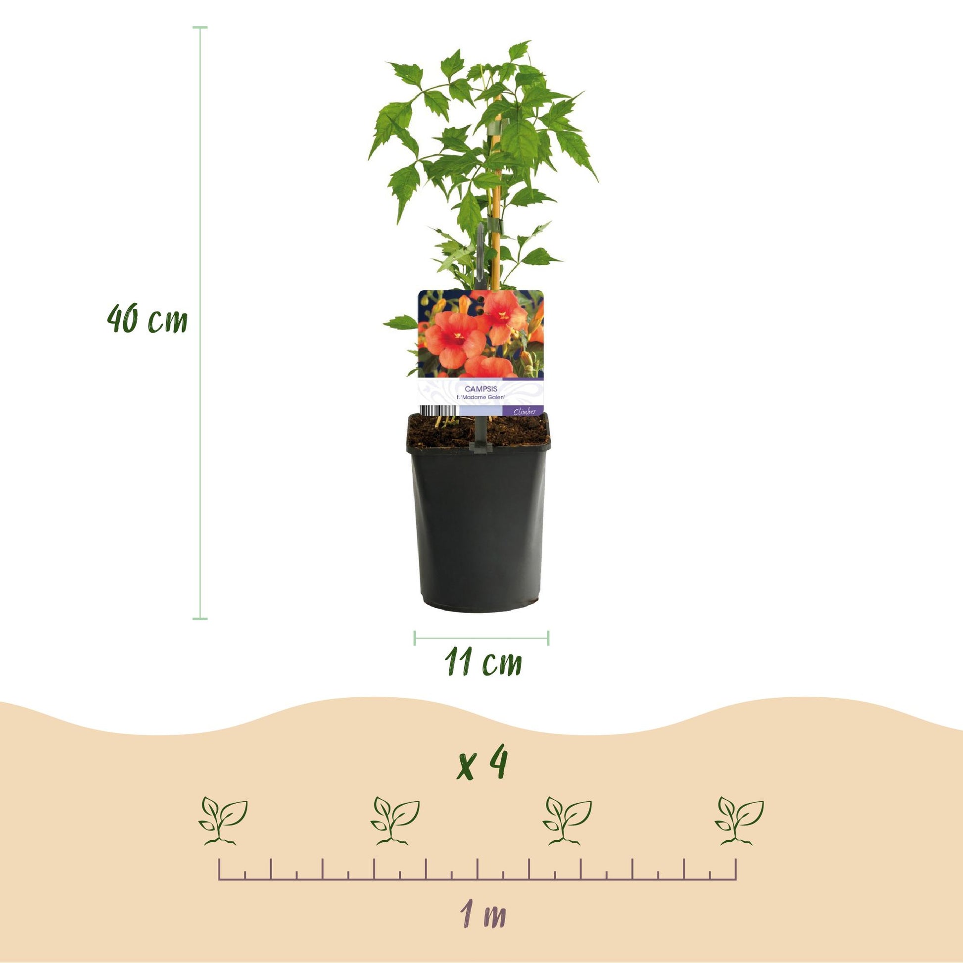 De Campsis radicans ‘Madame Galen’, ook wel trompetbloem genoemd, is een krachtige, weelderig bloeiende klimplant met grote, trompetvormige bloemen in een warme oranje kleur. Deze exotisch ogende bloemen verschijnen van juli tot september in grote trossen en zorgen voor een spectaculaire zomerse uitstraling in de tuin.