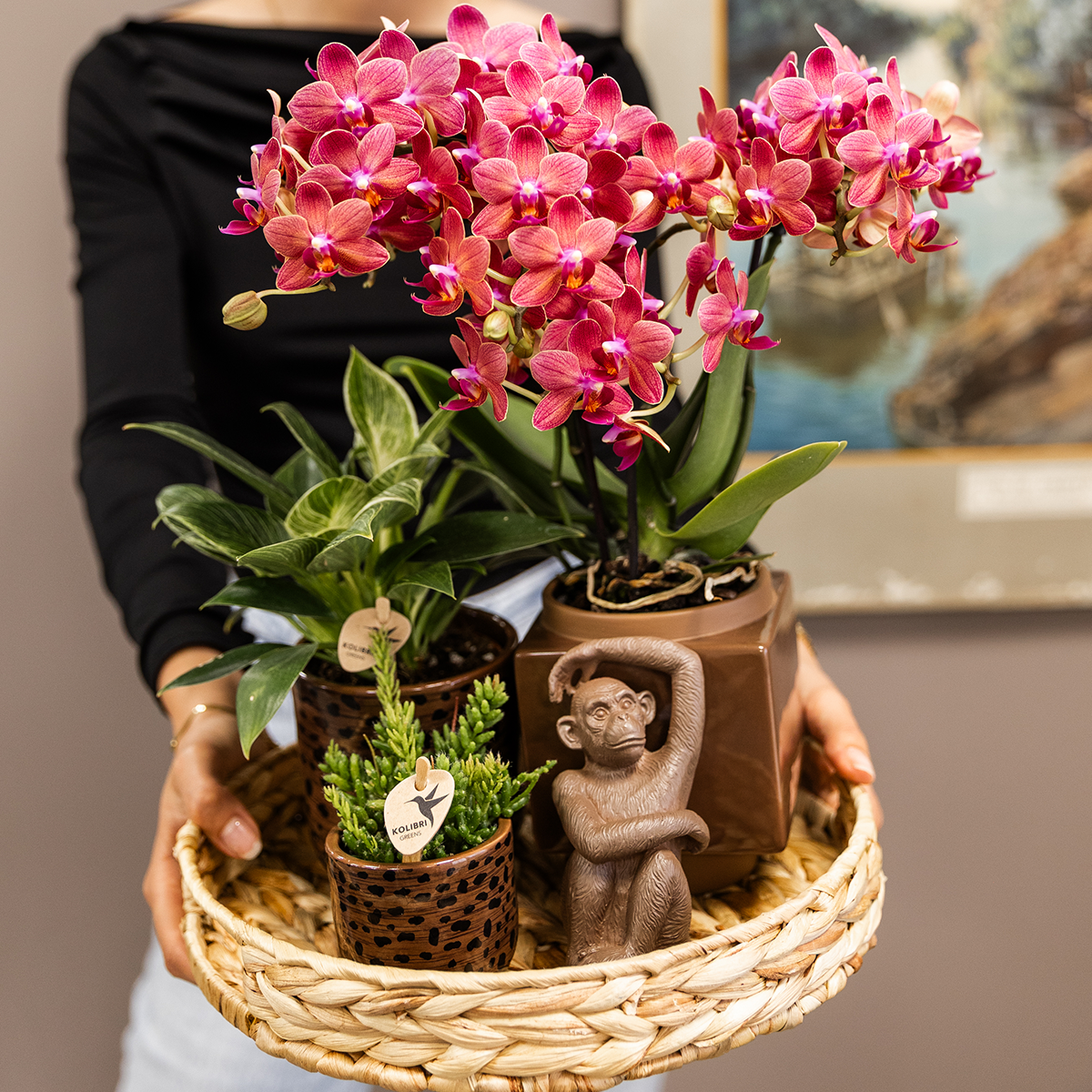 Durf te kiezen voor een opvallende look met de Leopard Pot! Deze unieke sierpot combineert een warme bruine basiskleur met een speelse, zwarte luipaardprint. Een echte eyecatcher voor elk interieur – perfect om jouw Kolibri Orchids of Greens een stoer en modieus podium te geven.