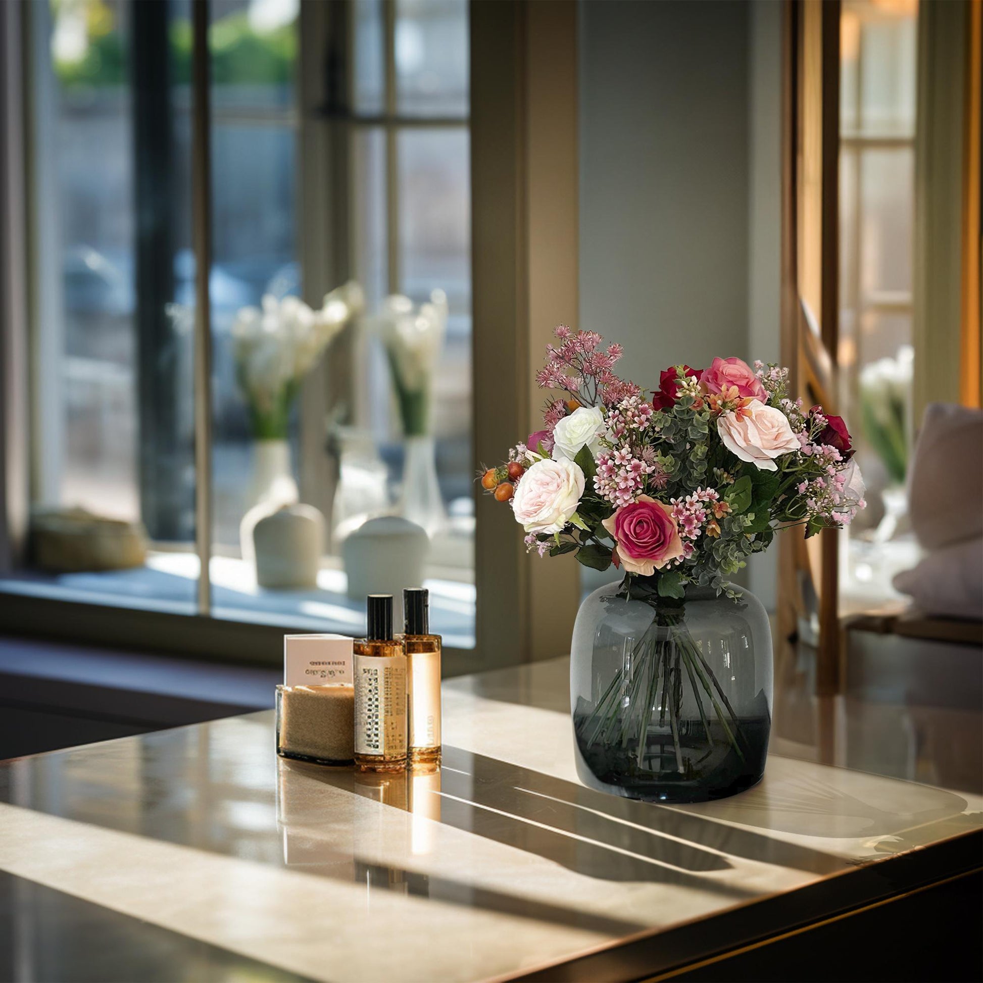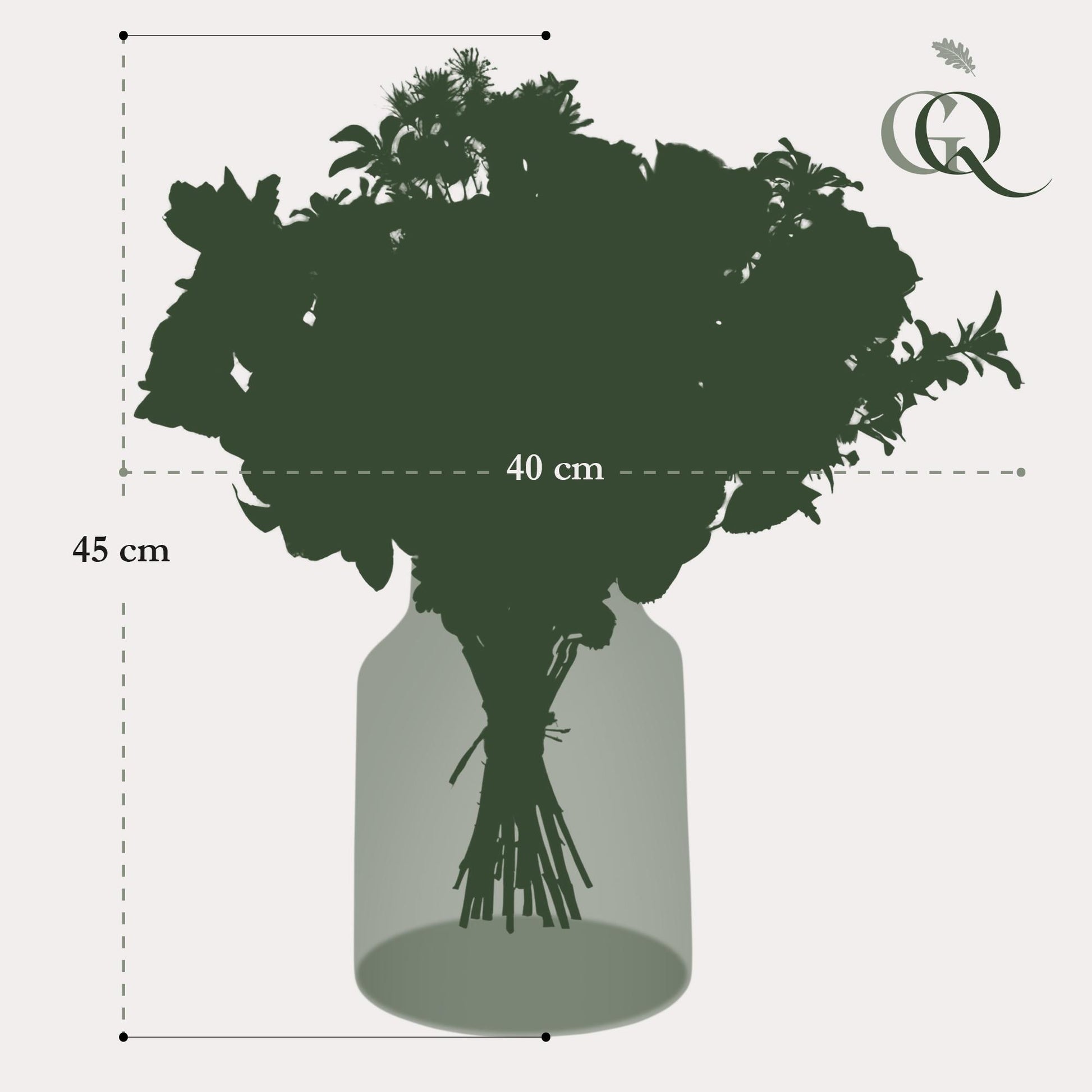 Laat je interieur vlammen met het Kunstbloemen Boeket M - Flame Roses. Dit krachtige boeket van 45 cm combineert vurige tinten rood, oranje en dieproze rozen tot een warm en stijlvol geheel. De bloemen zijn zorgvuldig vormgegeven met oog voor detail, waardoor ze een realistische en levendige uitstraling hebben. Perfect voor wie houdt van een opvallend accent met een romantische touch. Ideaal op tafel, in de hal of als blijvend cadeau – altijd in volle bloei, zonder verzorging.